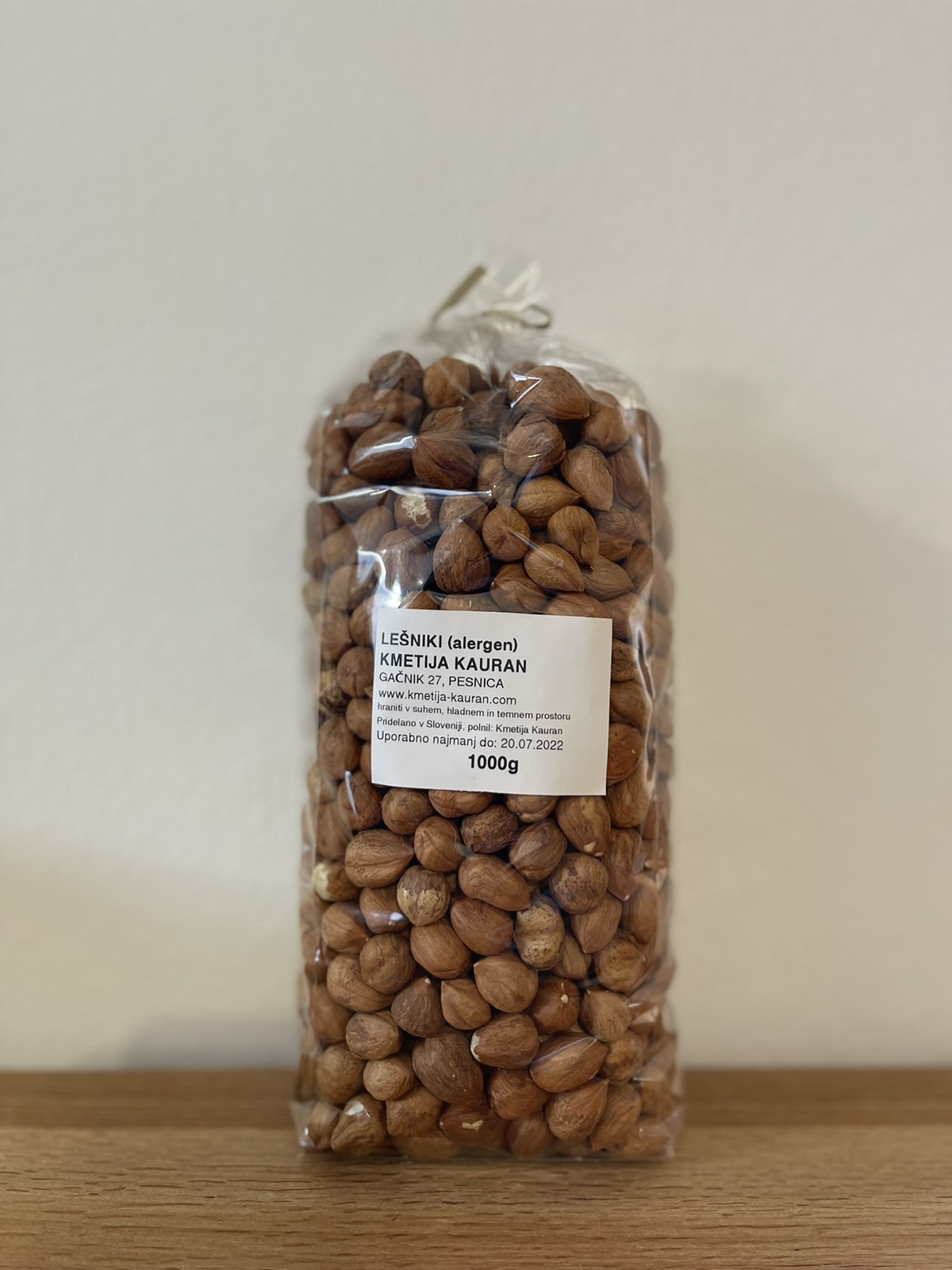 100% lešnikova jedrca ročno preberemo in so 1. klase. Pridelani jesen 2025. Rok uporabe 1 leto od pobiranja pri pravilnem shranjevanju.   Alergen. Hraniti v temnem, suhem in hladnem prostoru. Poreklo: Slovenija – kmetija Kauran